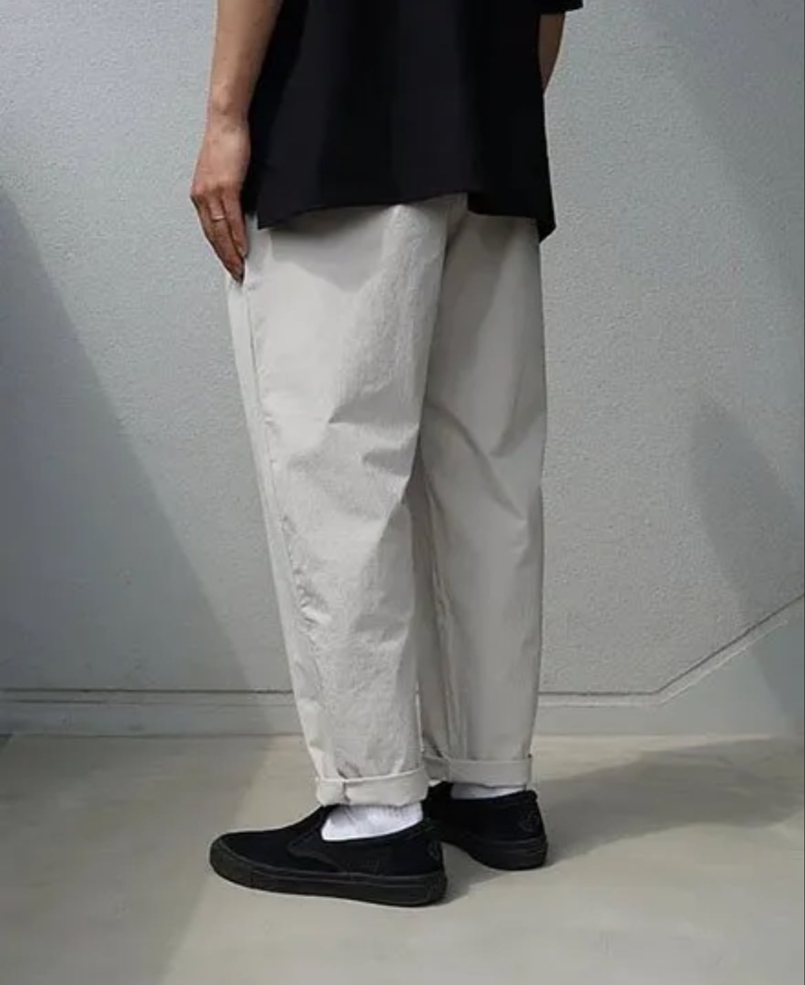 テーパードシルエットが特徴的なデザイン。