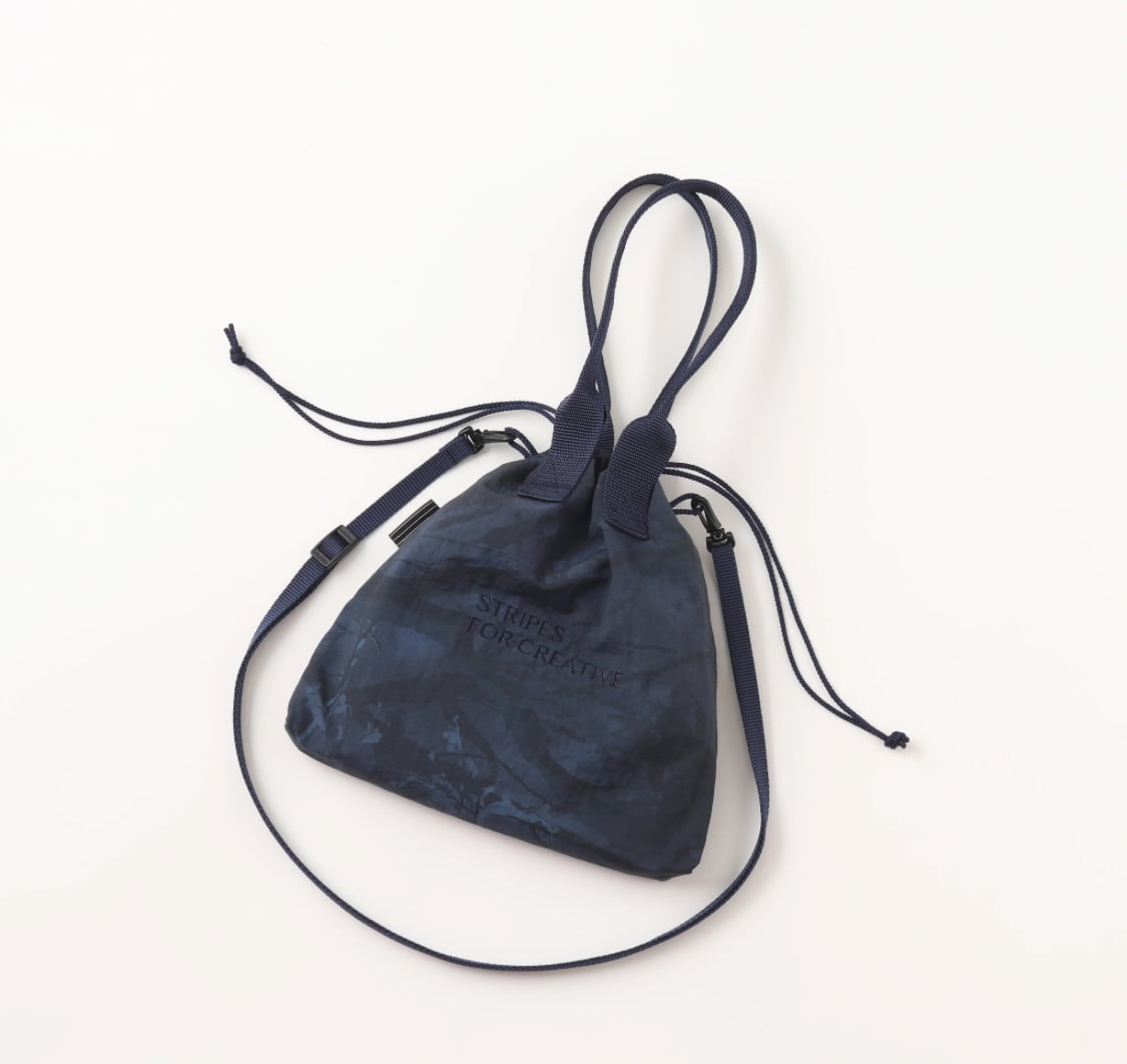 S.F.C (エスエフシー)のSFC SHOULDER POUCH (REAL TREE CAMO) / NAVY TREE CAMOになります。ショルダーストラップ付きの巾着バッグ。巾着バッグでありながらショルダーバッグとしても使用可能にアレンジしました。素材はコットンライクの肌触りが特徴のオリジナルカモ柄のナイロンタスランタフタを使用。軽さの中に適度なハリと強度を持ち、撥水性、防風、紫外線ブロックなどの機能を兼ね備えています。