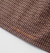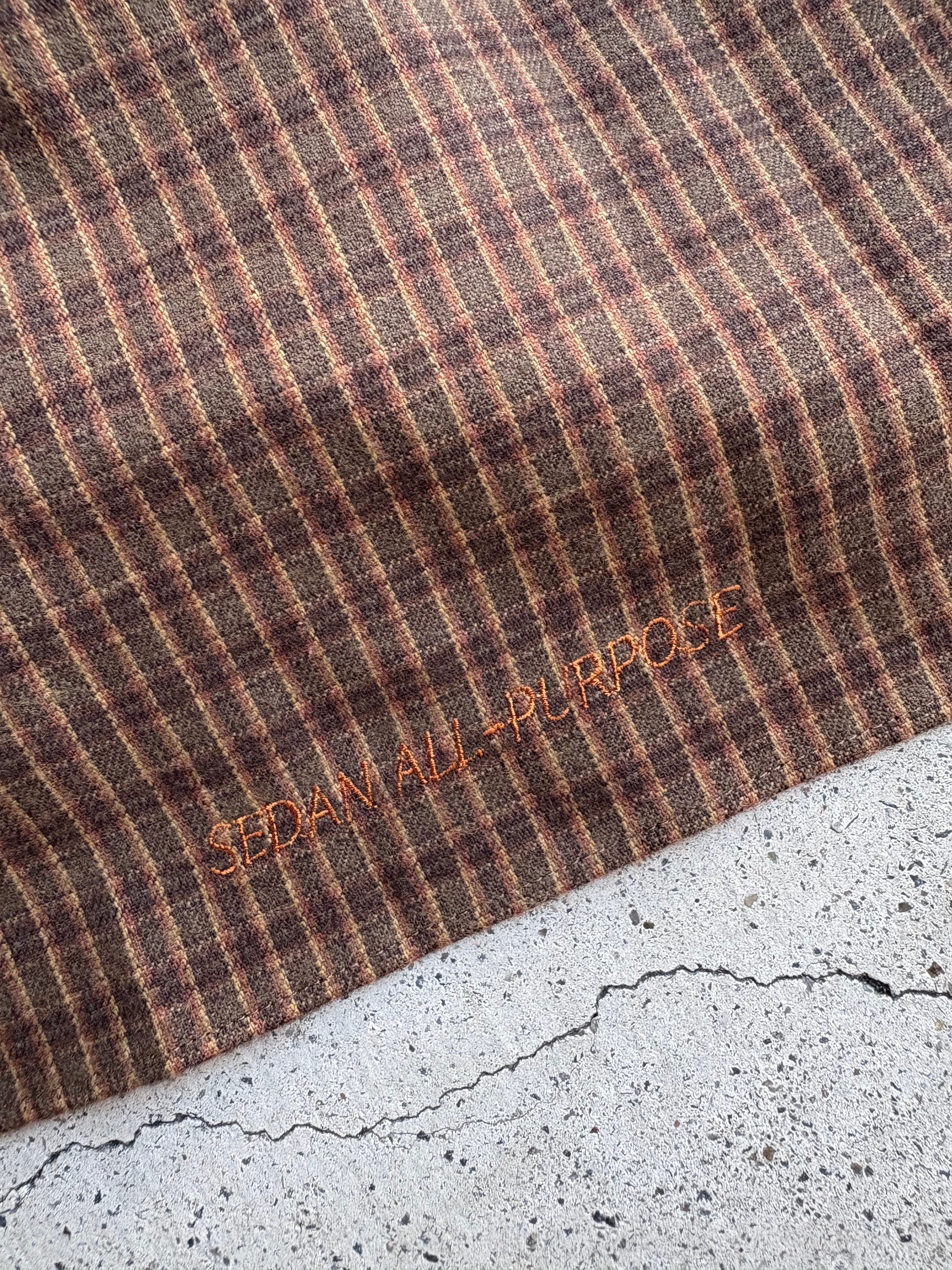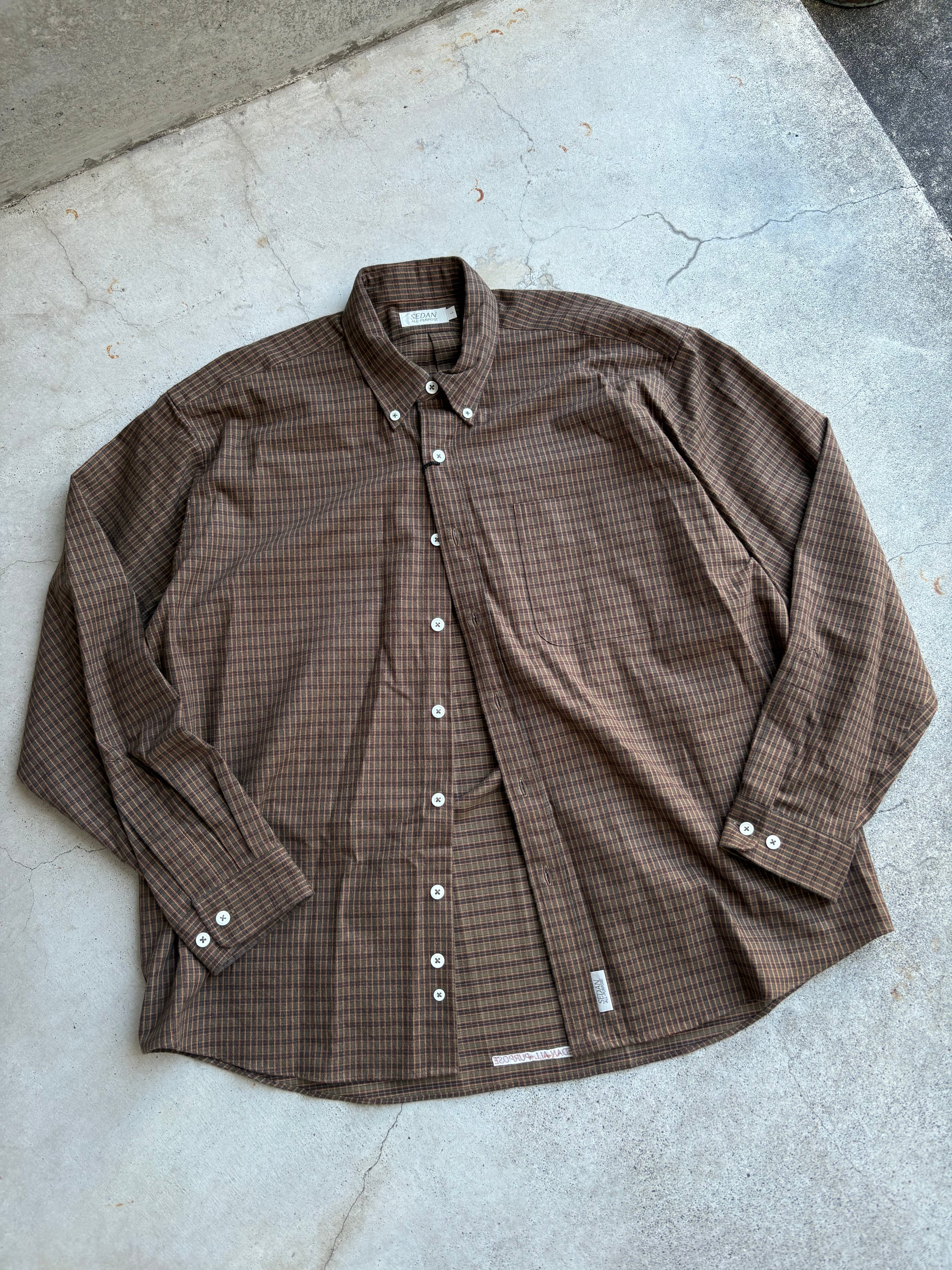 ブランド当初から継続してリリースしている大きなシルエットのボタンダウンシャツ。去年使った生地がとても良かったので柄違いで継続しました。しっかり厚みと密度があって、起毛も具合も最高。生地も縫製も日本製。後ろ身頃の裾にロゴ刺繍。