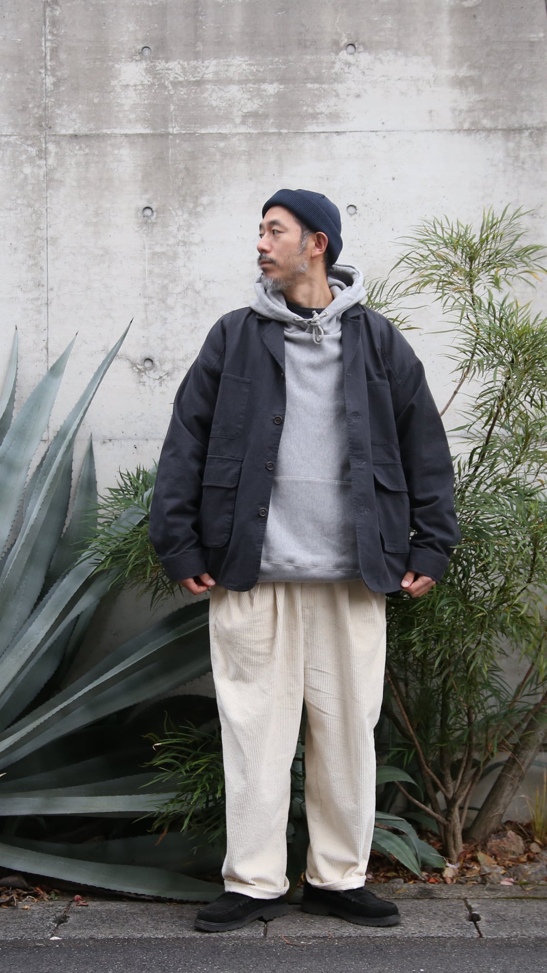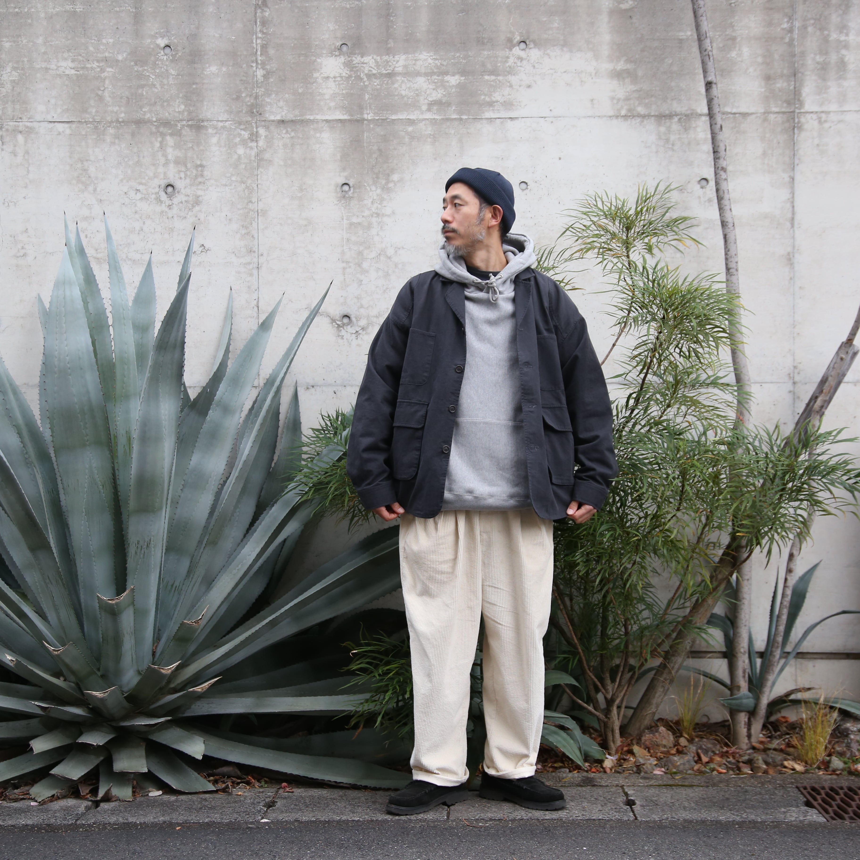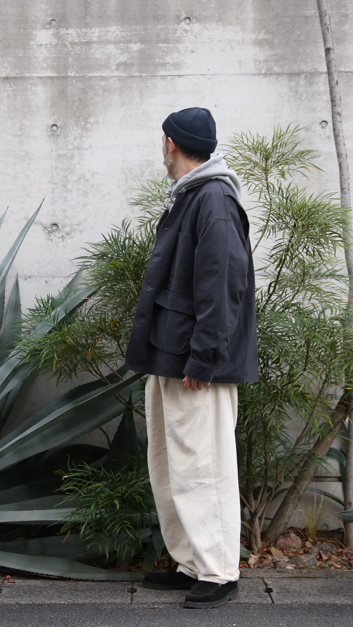裾をゴムで絞ることでシルエットにアクセントを加え、