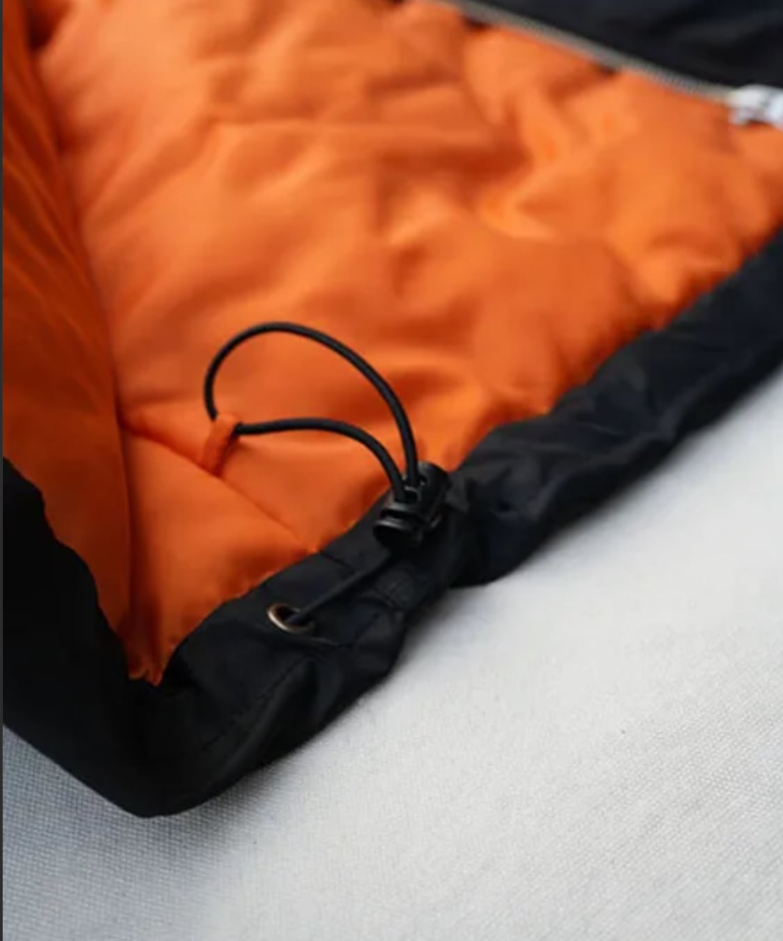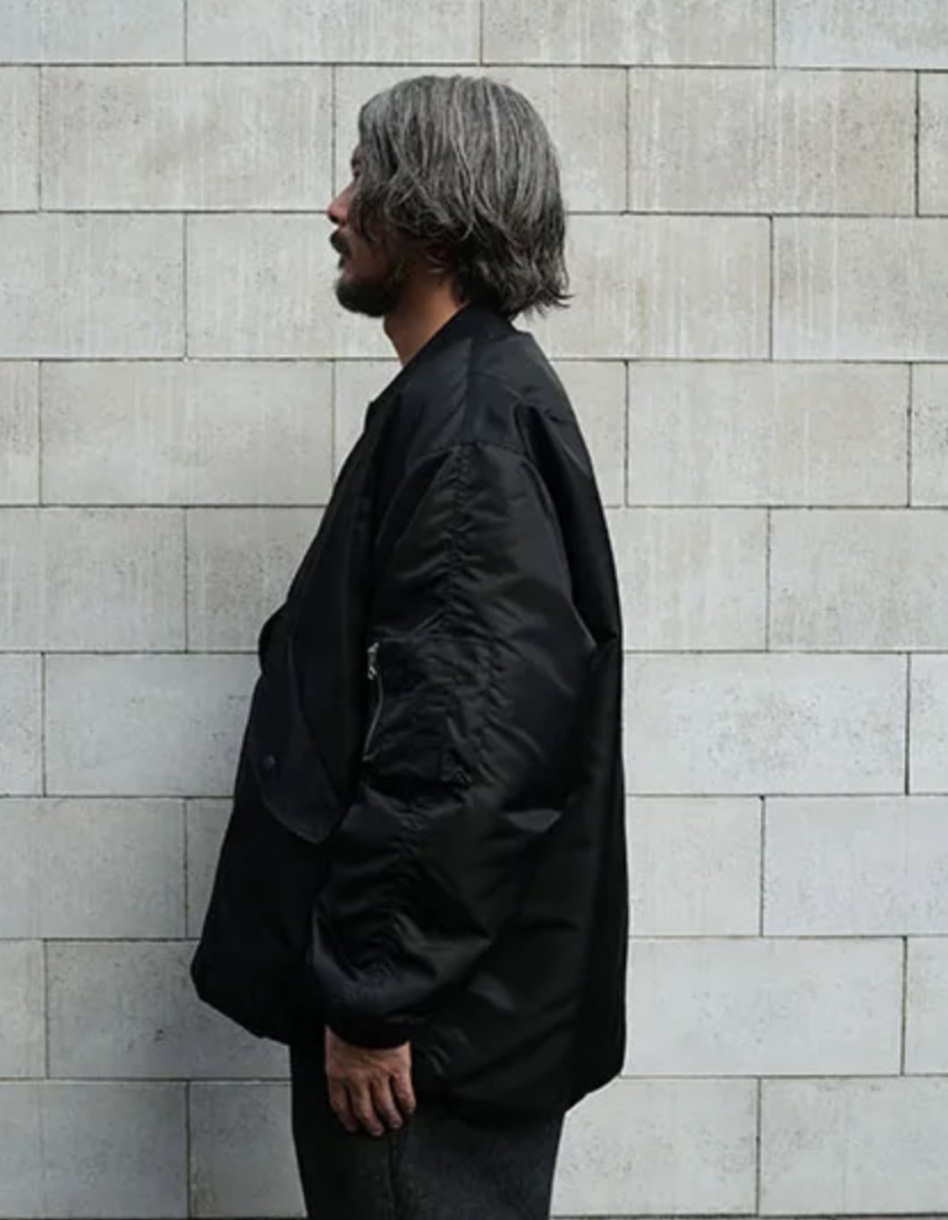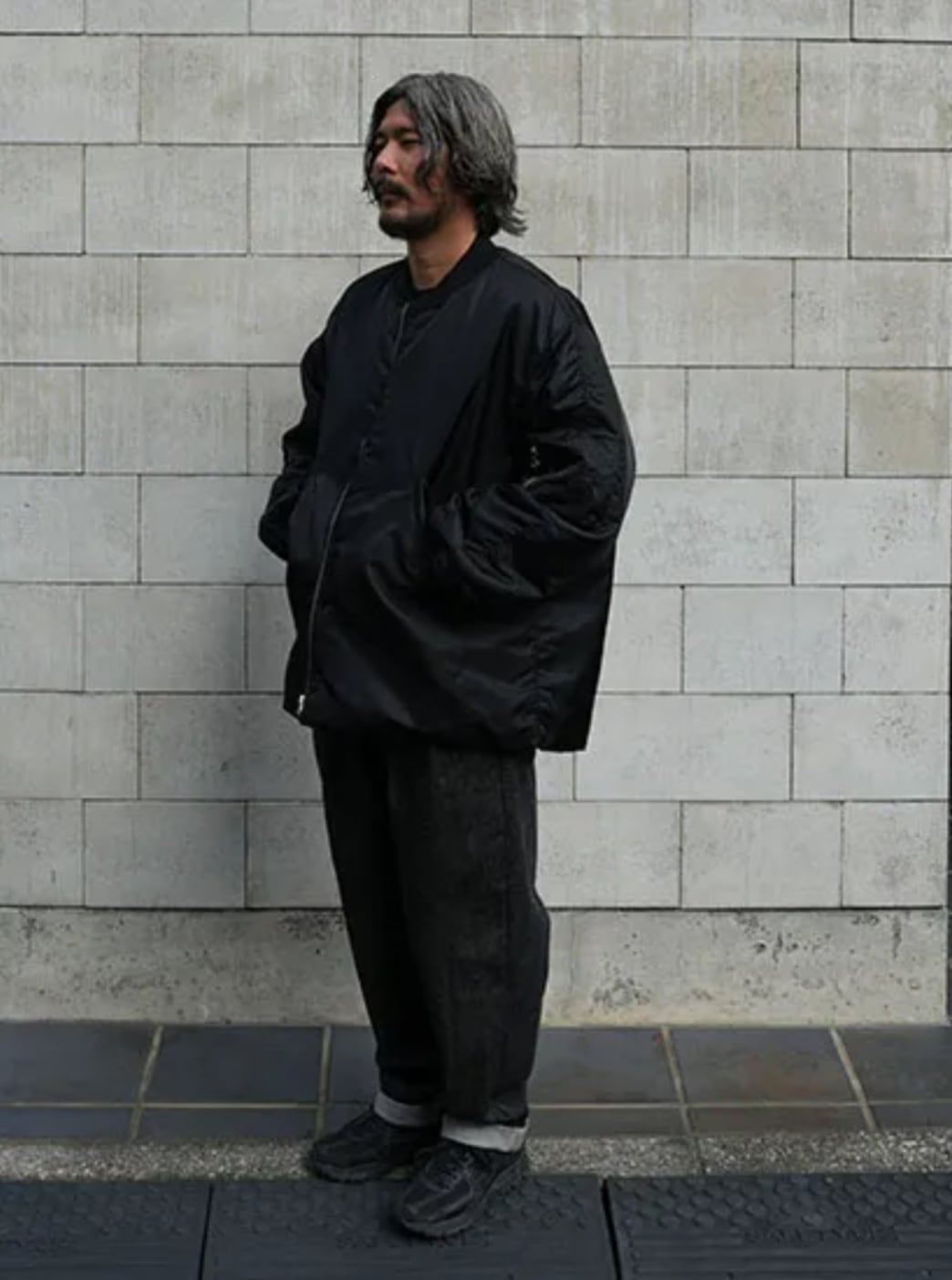 裾をゴムで絞ることでシルエットにアクセントを加え、