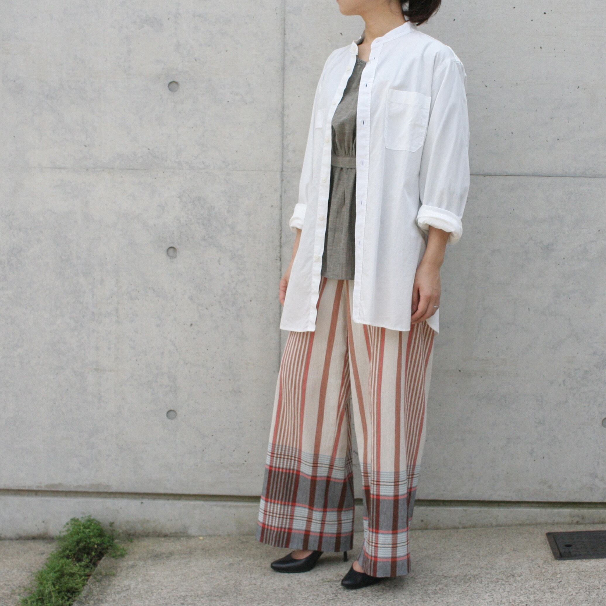 夏にぴったりなシアサッカー生地のチェックパンツ。