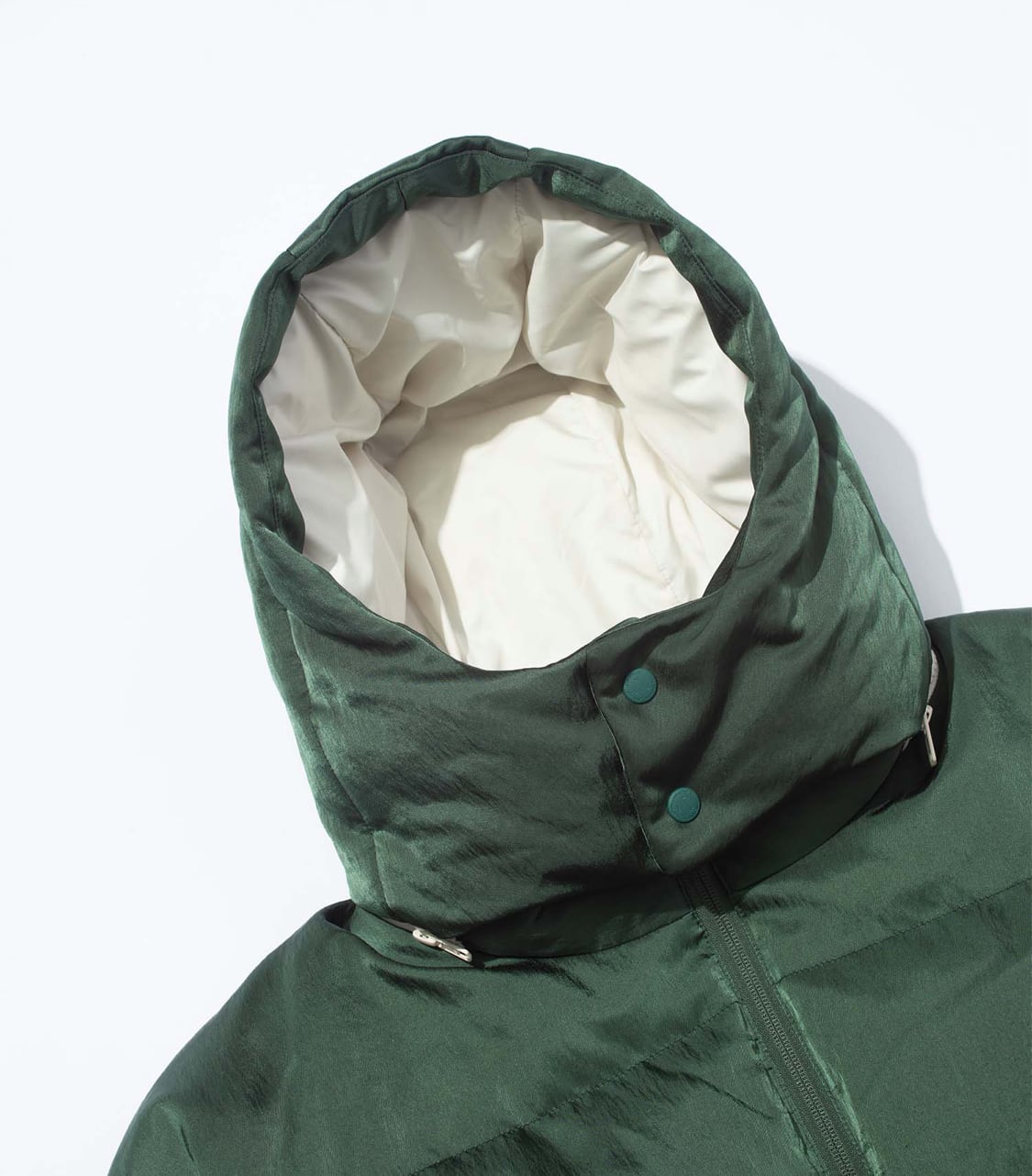 今回の協業では、毎シーズン好評のボリューム感のある型にファスナーで取り外し可能なフードを付けアップデート。