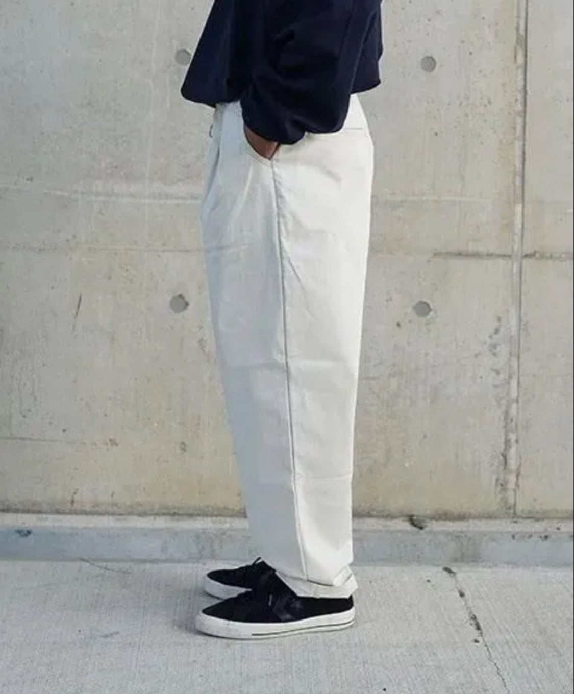 ボリューム感のあるテーパードパンツです。