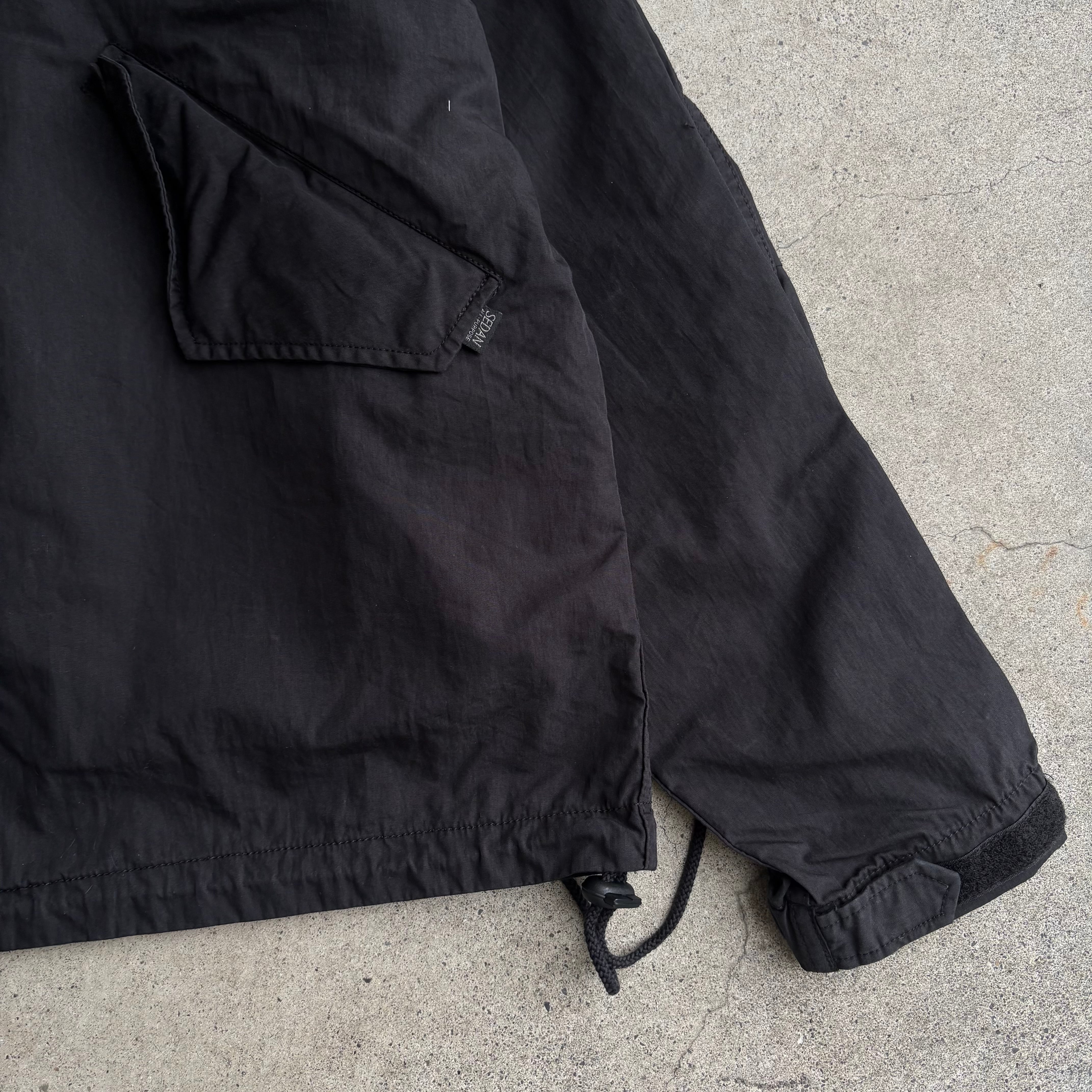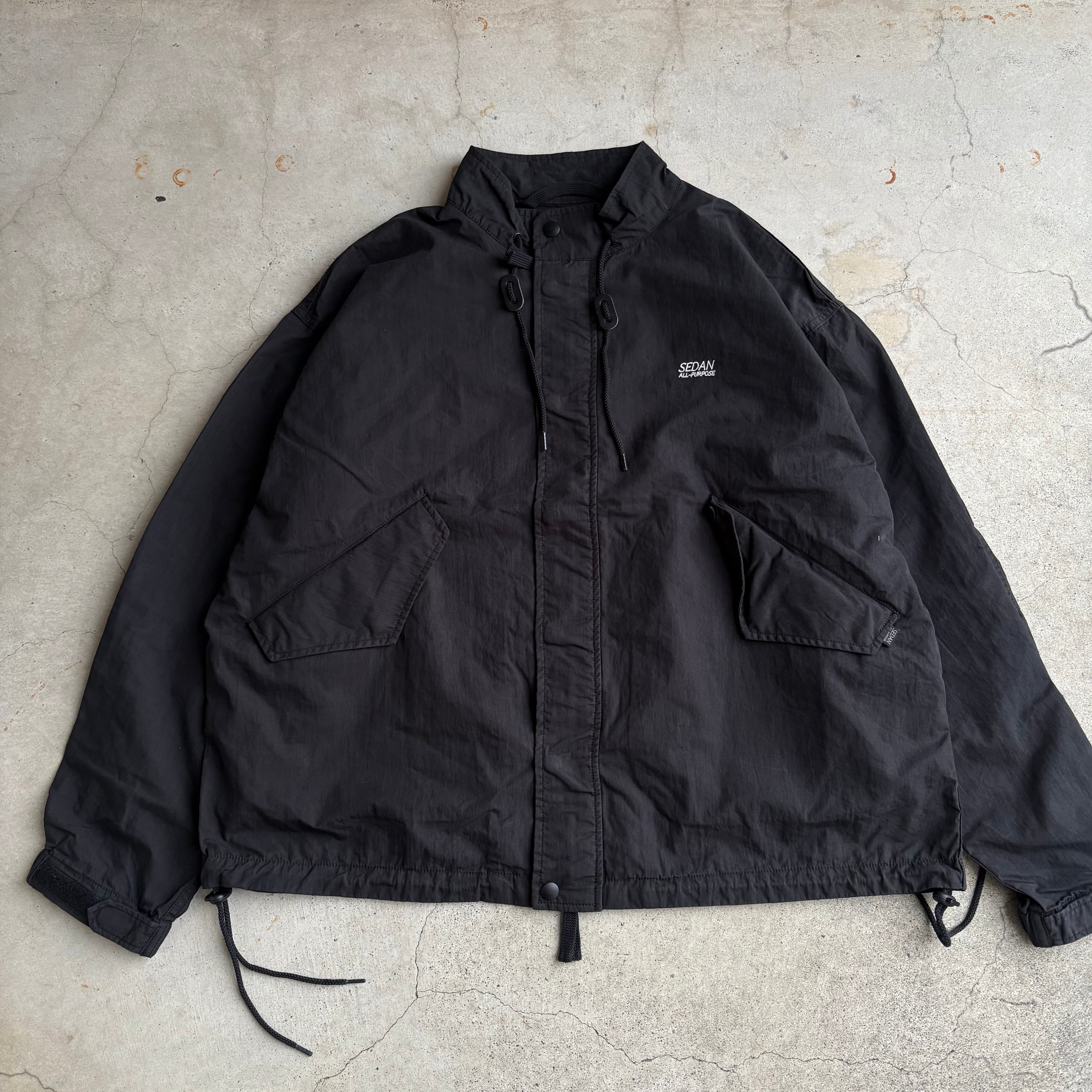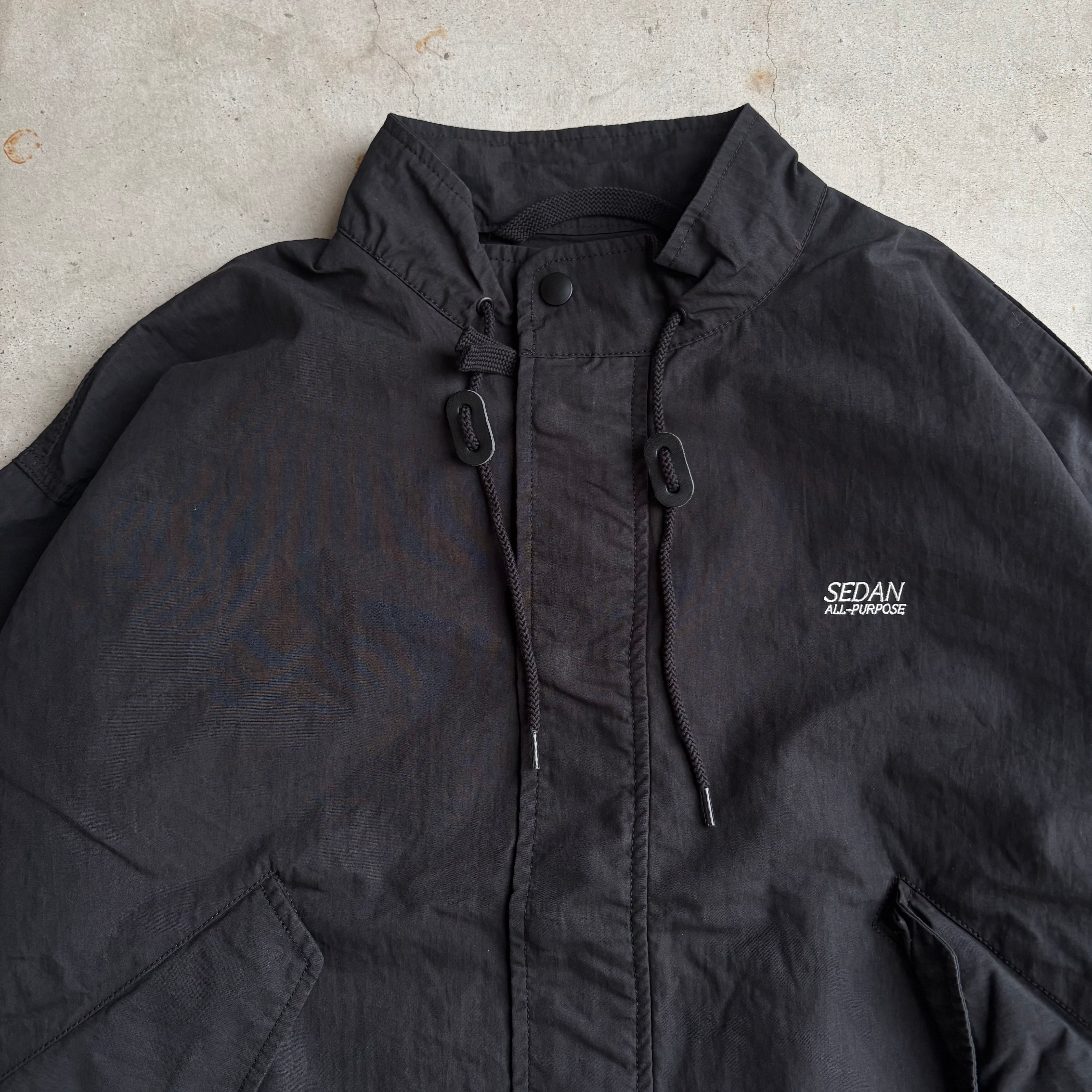 古くから様々なブランドでサンプリングされてきたミリタリーコートの名作をショートタイプのジャケットにしました。コットンナイロンの生地を巻き縫いしてミリタリーの雰囲気をビシビシと感じられるジャケットを作り、製品洗い加工を入れてパッカリングやアタリ感もあるものに仕上げました。また裾はドローコードで絞ってシルエットを変えることができます。左胸にはSEDANのロゴ刺繍入り。