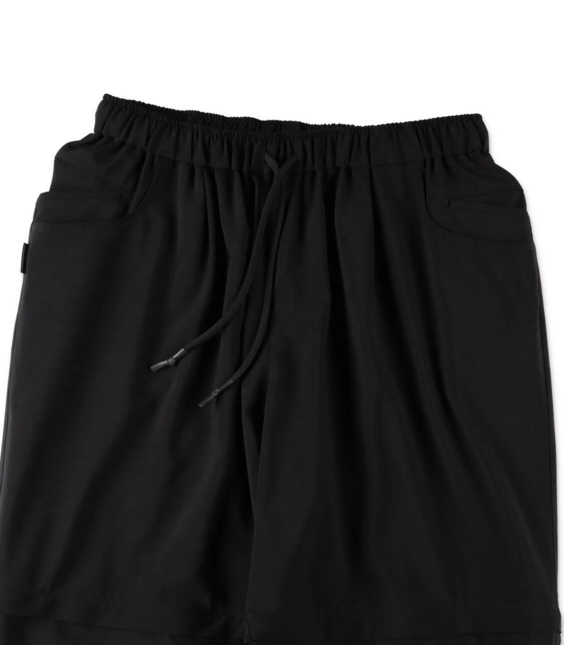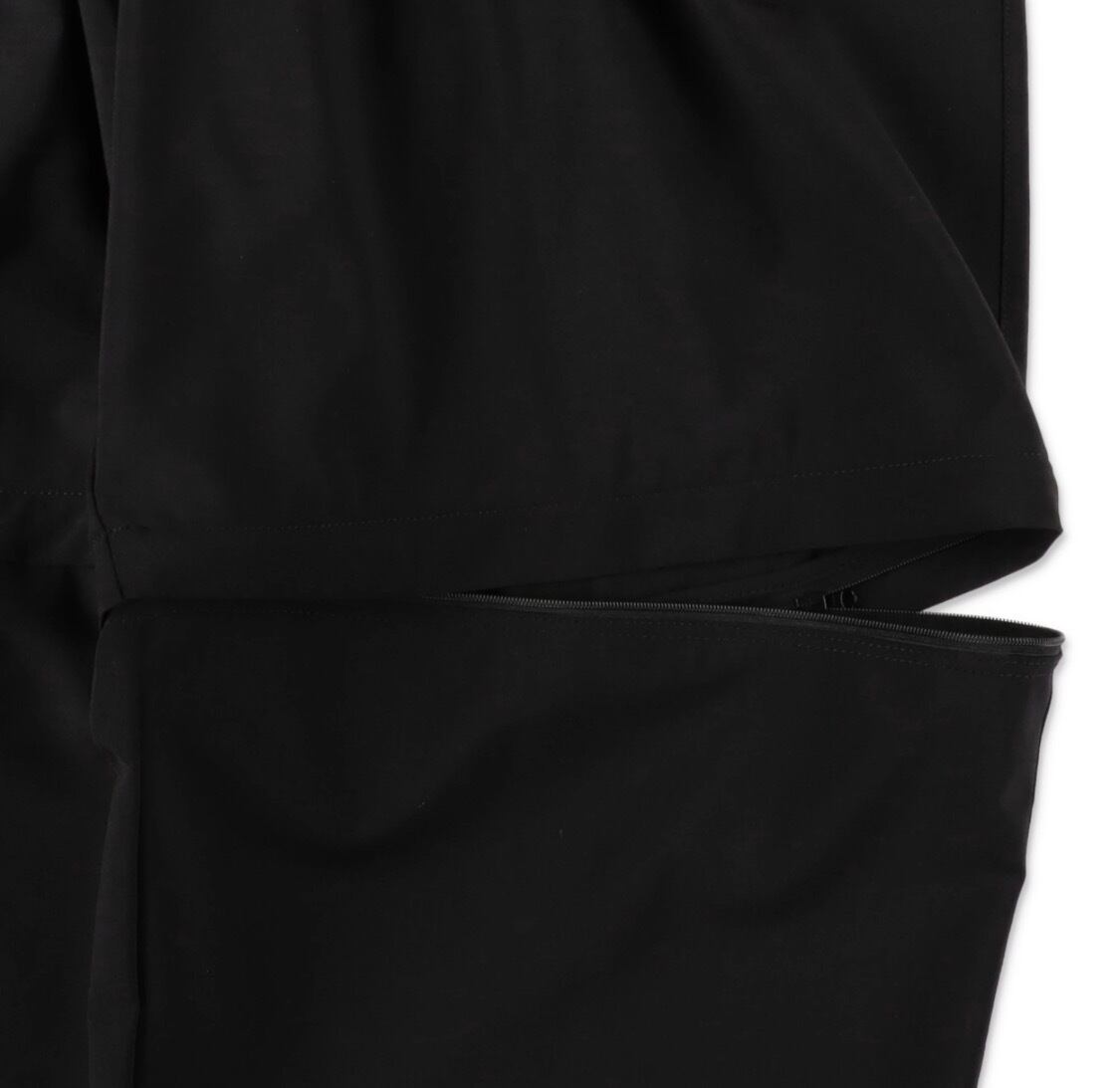 SHORTSにアレンジできるようにファスナーで脱着機能を持たせた DETACHABLE PANTS。ロングパンツ、ショーツでもどちらもワイドなシルエットを楽しんでいただけます。素材はウールに伸縮性のあるポリエステルをブレンドしたフレックスウールを使用。梳毛の持つドライ感とハリのある風合いの良さはそのままに、洗えて、伸びて、シワになりにくくピリングしにくい、イージーケアウール素材です。