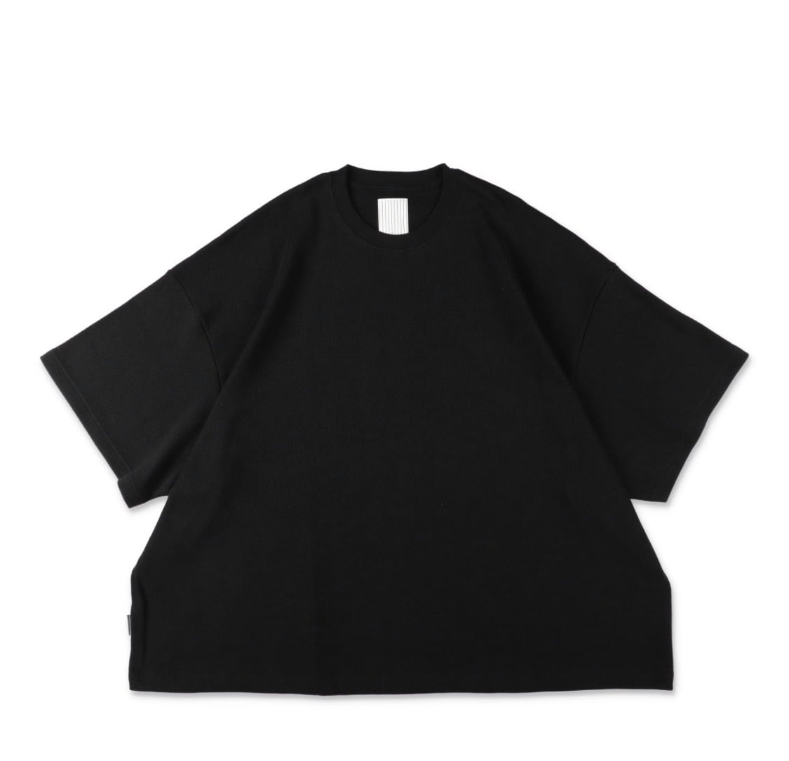 S.F.C (エスエフシー)のSUPER BIG THERMAL SS TEE/ Blackになります。ハニカム素材を使用した SFC 定番ビッグシルエットのFLAT TEE。素材はBD(空)糸を使用することにより、シャリ感のあるさらっとした着心地が特徴のハニカム素材を使用。空気の力で紡績しているため、ボリューム感がありながらもドライなタッチで程よく固めの風合いを持つ素材です。