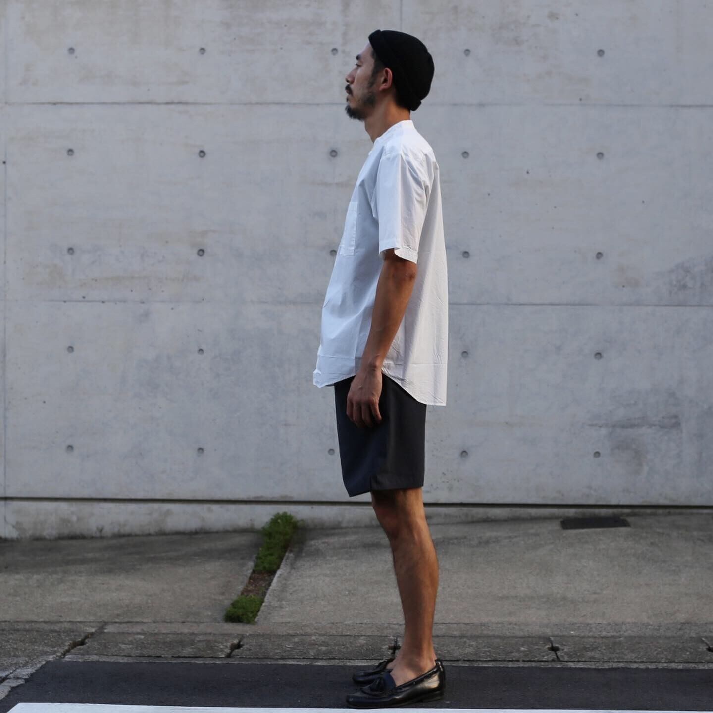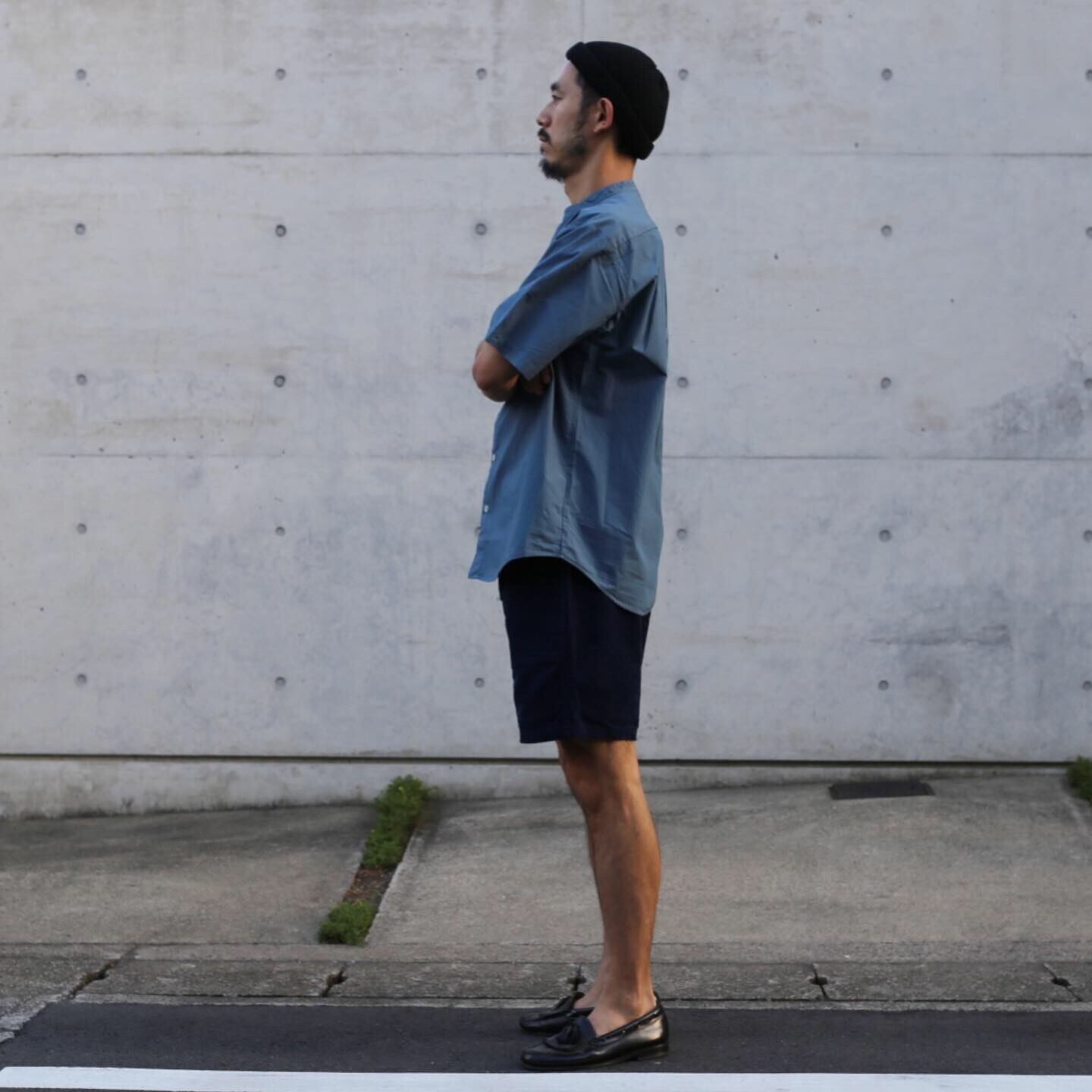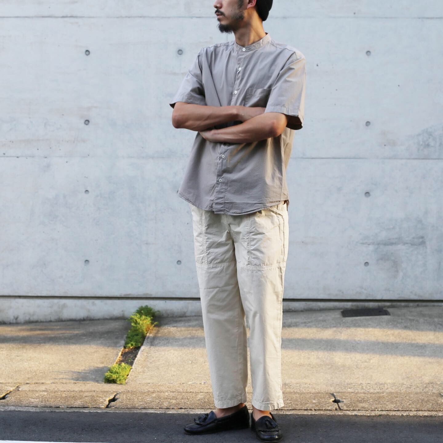 LOOSE FIT BAND COLLAR S/S シャツ。