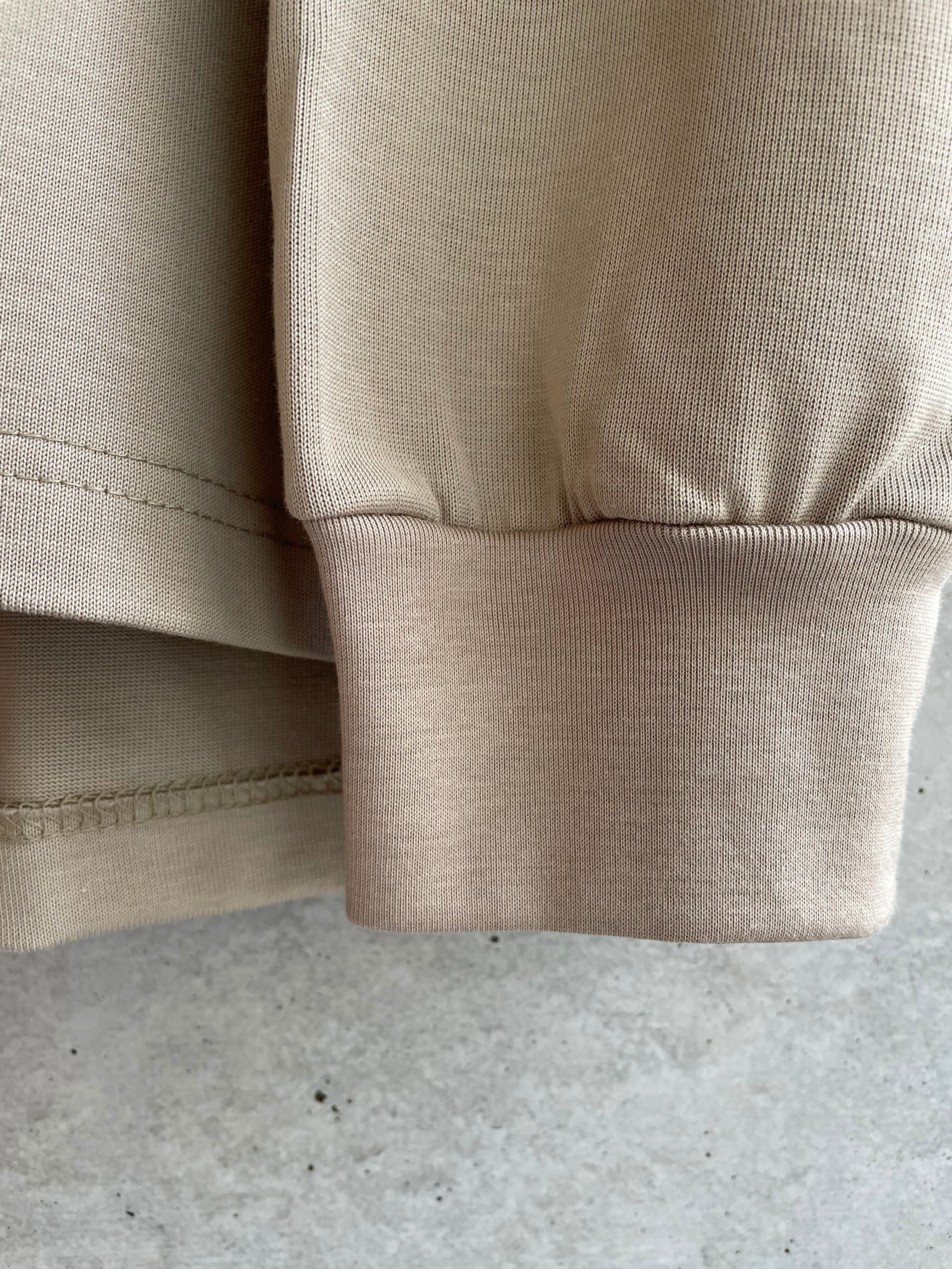 天竺ながら厚みのある肉感と美しい光沢感による上品な表情と、ゆったりしたサイジングが相まって大人のための主役ロンTとして活躍します。