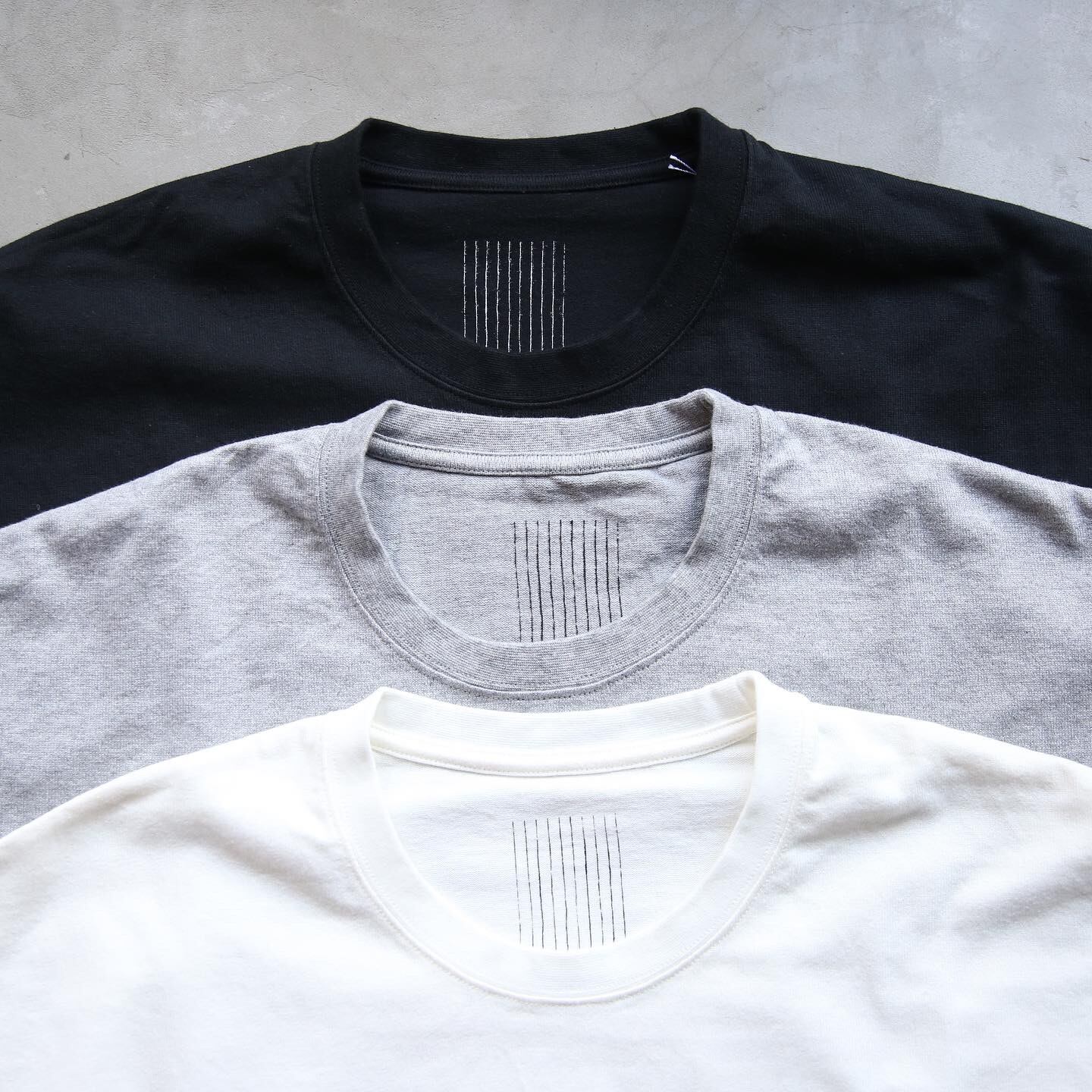 素材は国産の20/2 の太番手の糸を限界の16 ゲージまで度詰めて編んだ、しっかりした肉厚の天竺素材を使用。
