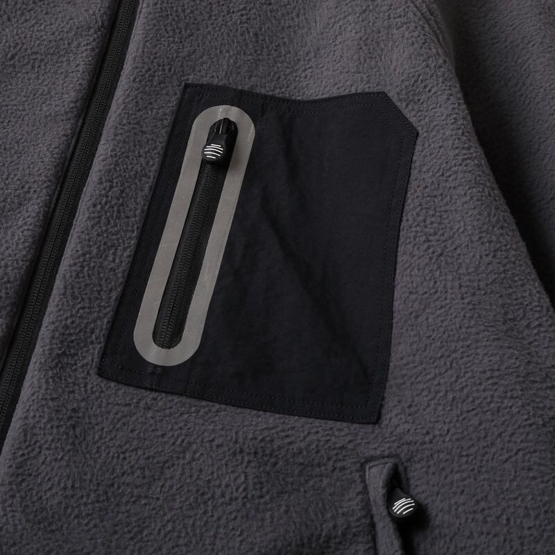 フリース面のポケットにリフレクターテープでデザインしたパーツを使用し、また裾のドローコードにもリフレクターテープを使用。夜間に外出する際の安全性を高めました。