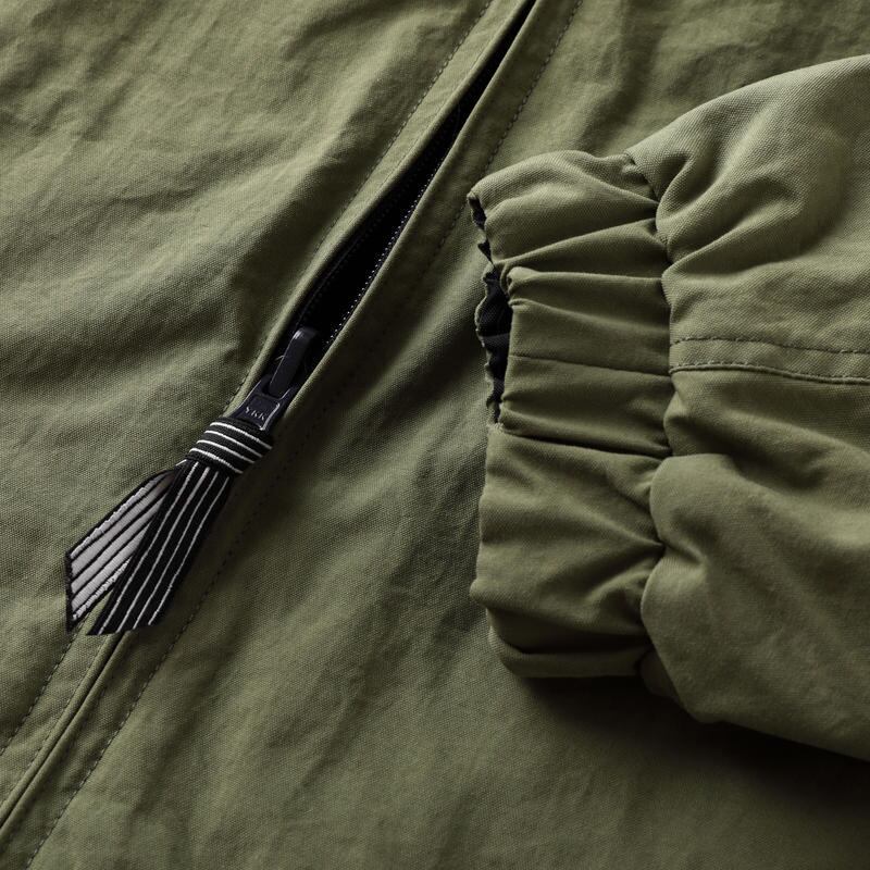 ナイロン素材はナチュラルな風合いと膨らみをもったヴィンテージナイロンオックスを使用、フリース素材は保温性、速乾性に優れ滑らかなさわり心地と軽さを持ったフリースを使用。毛足を刈り、タンブラー加工を施すことにより、ピリングの発生を起こりにくくしています。