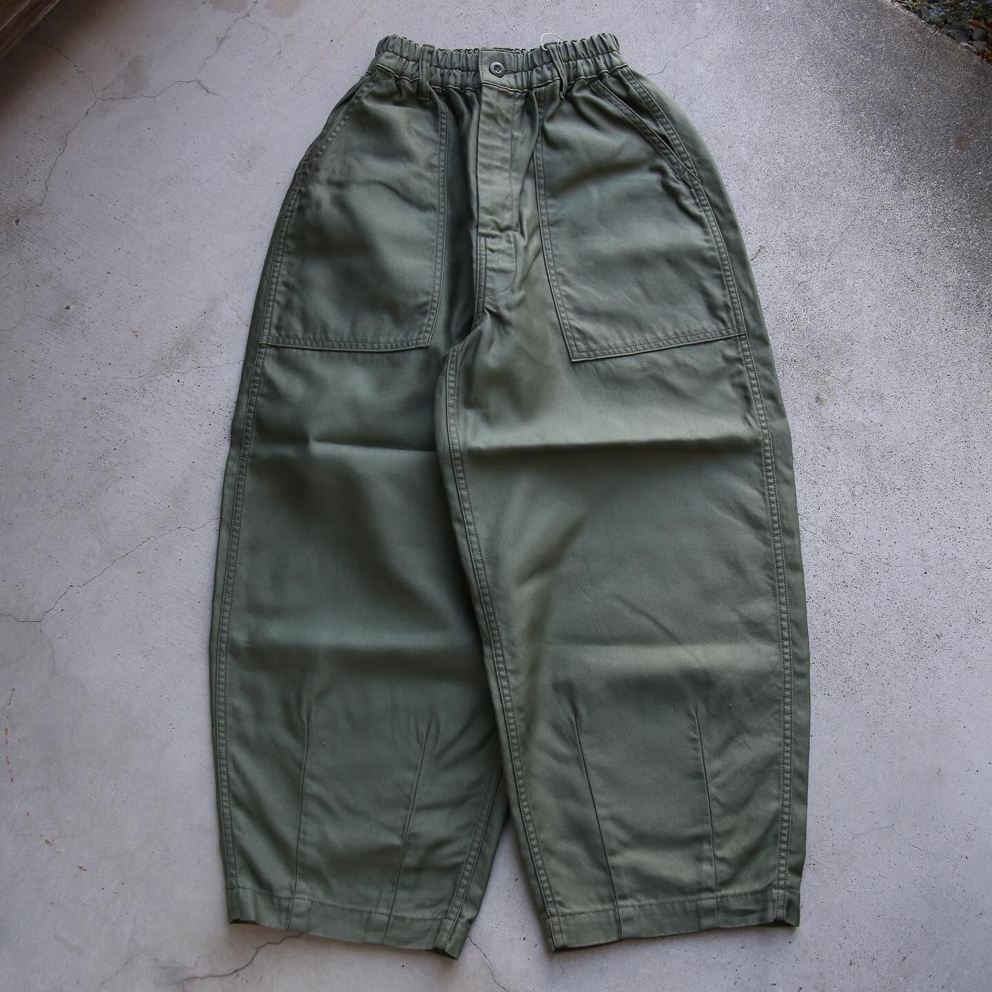 ウエスト周りのゴム仕様とスソのダーツで適度なボリューム感のあるサーカスファティーグパンツ。