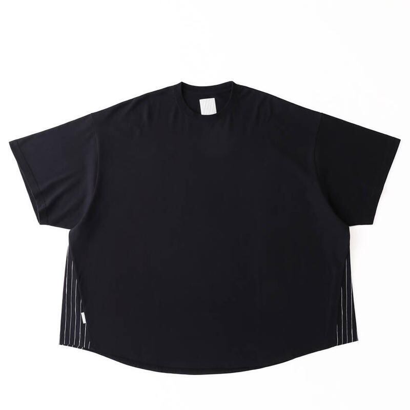 極端に身幅、袖幅を大きくアレンジしたSFC SUPER BIG TEE。脇下の切り替えパーツのみにSFCオリジナルストライプ柄を配色。素材は30SのMVS(毛羽の少ない糸)を使用し引き揃えて編むことでハリ感を持たせた、しっかりとした厚手の天竺素材です。