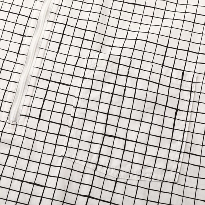 ハーフジップ仕様、両胸パッチポケット、素材はオリジナルチェック柄をプリントしたコーマバーバリー生地を使用。光沢に優れた上質なコーマ糸で使用し、耐久性も兼ねそなえた上品な素材のワークシャツです。