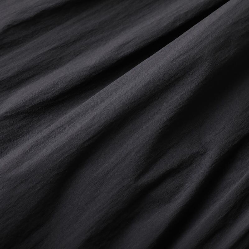 ロングパンツ、ショーツでもどちらもワイドなシルエットを楽しんでいただけます。素材は20Dのナイロンを使った、超軽量・強撥水・ハイストレッチ生地を使用。細い糸を使用しながらも高密度であるため、独特なハリ感・上質な見え方が特徴の素材です。裏地には高多汗処理機能を持ち、肌面を快適に保つメッシュ素材を使用。