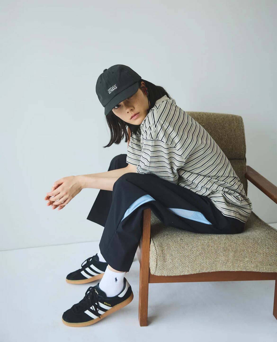最近はメジャーになりつつある感じのするナイロンキャップ。汗止めがパイルになっていたり、雨も気にせずかぶれたりと、暑い日やキャンプにも大活躍。シワ加工されたナイロンを使用しているのでいかにも合繊といった感じもないのが良いところ。ツバ部分は芯なしで柔らかく、アジャスターはゴムなので、フィット感も抜群です。機能性を追求するためにツバが少々柔らかめですが、フィットして被ると収まりがよくなります。