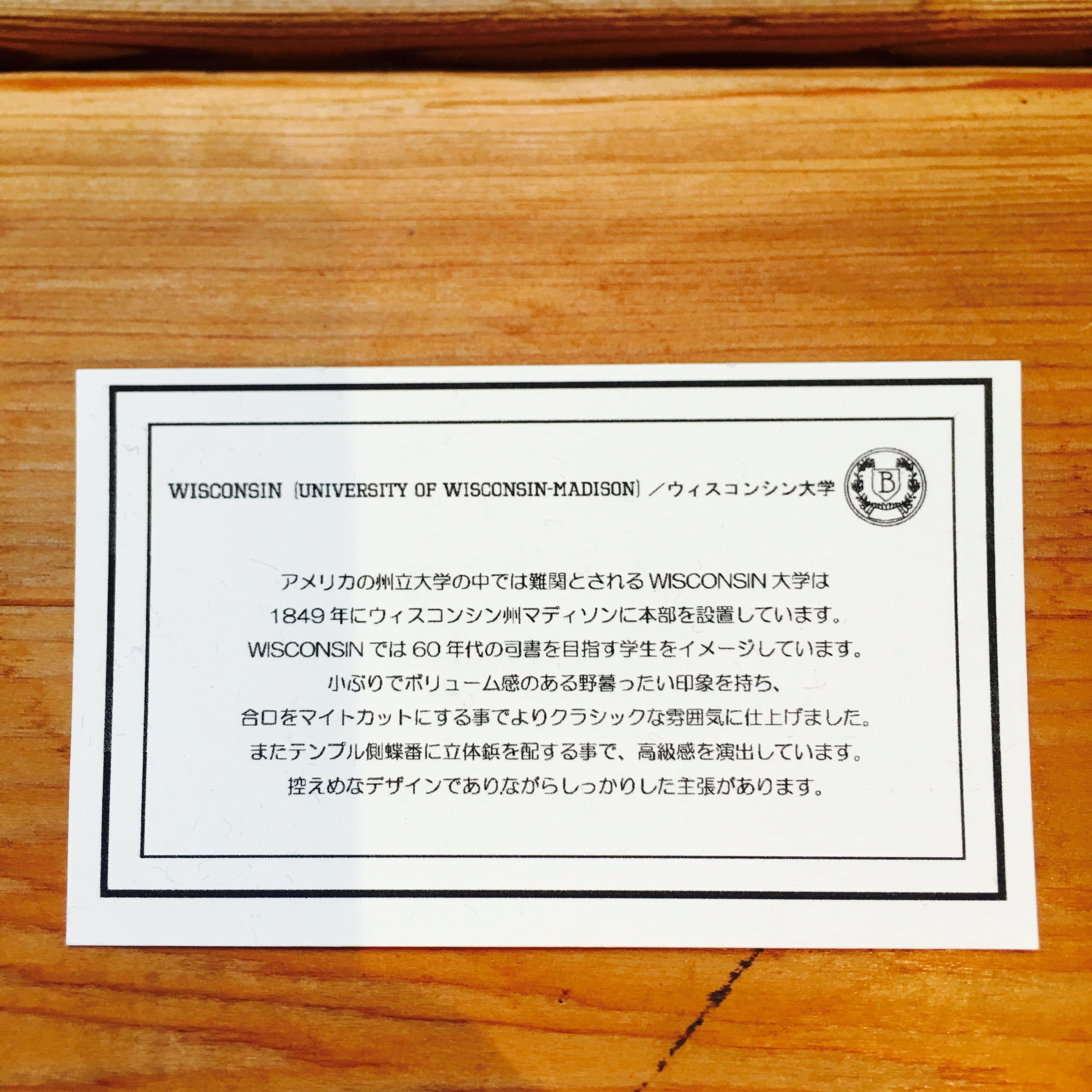 Buddy OpticalのFeel college Collection"WISCONSIN/ウィスコンシン"。